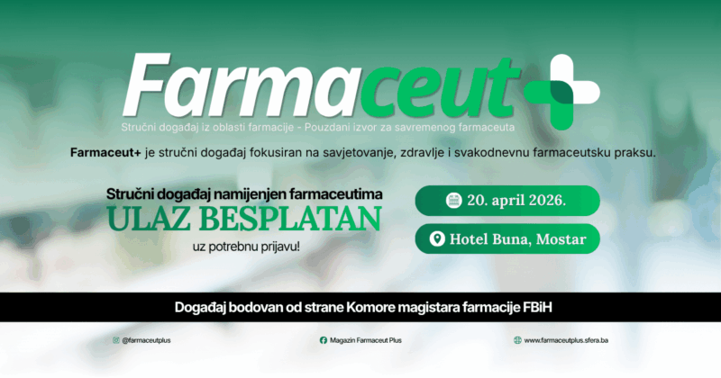 Farmaceut+ predstavlja stručni edukativni događaj namijenjen magistrima farmacije i farmaceutskim tehničarima, s ciljem unapređenja znanja i svakodnevne prakse kroz aktuelne i relevantne teme iz oblasti farmacije. Događaj obuhvata širok spektar tema važnih za savjetovanje pacijenata i očuvanje zdravlja, s posebnim fokusom na prevenciju, kvalitet života te proizvode koji su dio svakodnevne farmaceutske prakse. Farmaceut+ je…